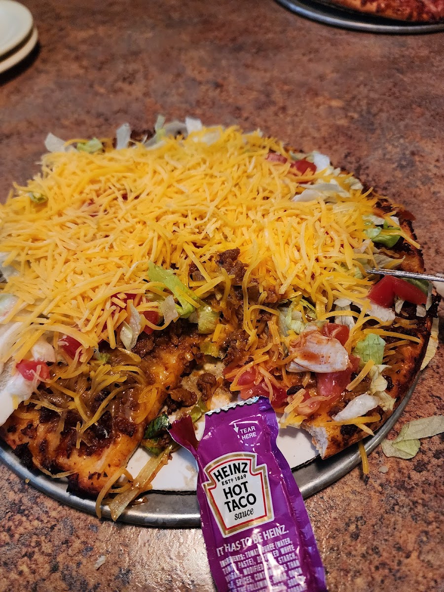 The menu lineup shows they balance traditional with some playful twists: you can opt for something familiar like the Pepperoni Pizza with extra sauce or stretch into more unique territory with their Taco Pizza, topped with seasoned taco meat and fresh shredded lettuce. The Royal Feast and Hamburger Pepperoni Ham Bacon pizzas cater to heavier appetites, making it easy to find a crowd-pleaser whether you’re after a simple cheese slice or a fully loaded pie. Alongside the pizzas, wings and salads—especially the grilled chicken Caesar or house salad—round out options that keep things balanced and appealing for smaller or lighter meals.