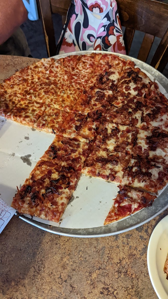 Walking in, you’ll notice the casual, inviting atmosphere where the focus is squarely on the food and friendly service rather than flashy decor. It’s the kind of place where routines get established—families sit down for quick weeknight dinners, groups share a mix of their favorite pies, and the folks who grew up nearby come to catch up over those classic small, square-cut slices known for a thinner crust and compact pepperoni bits that stand out compared to the typical large rounds.